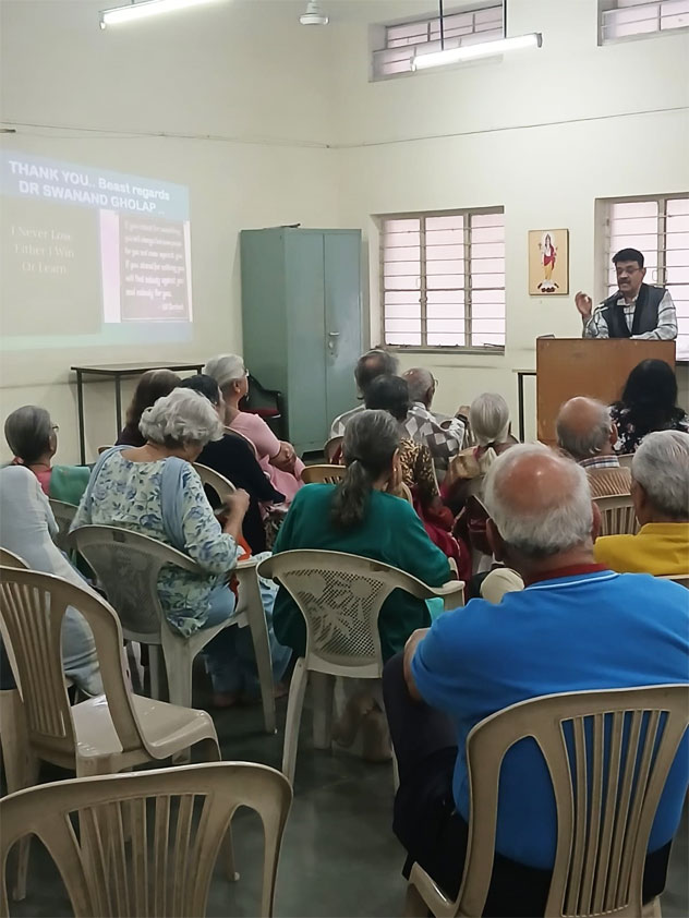 कर्नल क्यूब संस्थेने शनिवार, २४ जानेवारी २०२६ रोजी "इएनटी अँड वर्टिगो" या विषयावर डॉ. स्वानंद घोलप यांचे भाषण आयोजित केले होते. कान, नाक, घसा आणि व्हर्टिगो याबाबत ज्येष्ठानी घ्यायची काळजी आणि निगा यासंबंधी माहिती सांगितली.
